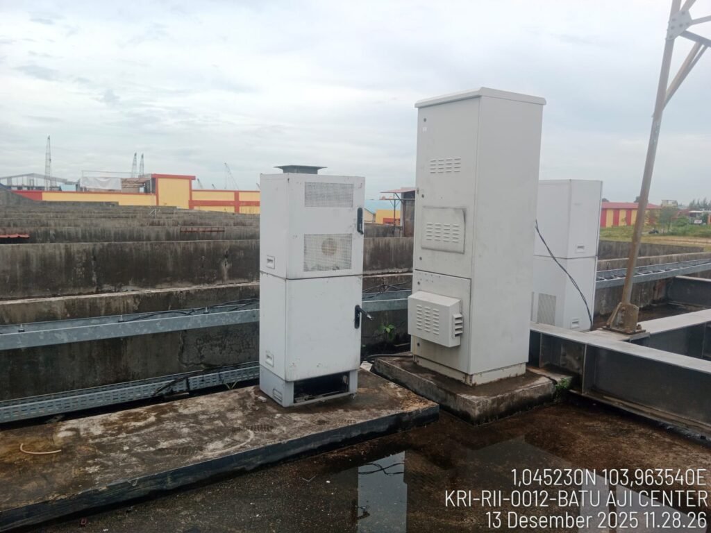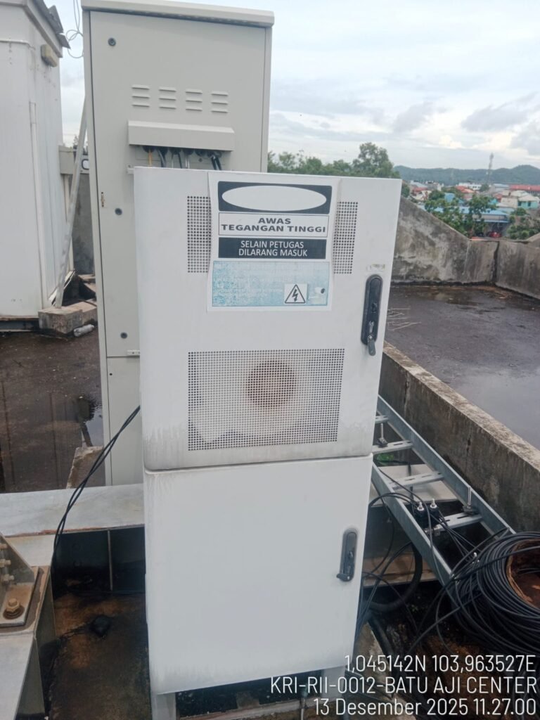 Kabinet Telekomunikasi Luar Ruangan (Outdoor Telecom Cabinet) merupakan sebuah wadah pelindung tahan cuaca yang dirancang khusus untuk menempatkan peralatan telekomunikasi penting yang dipasang di sekitar atau pada bagian dasar menara. Kabinet ini dibuat dari material yang kuat dan tahan lama, seperti baja galvanis atau aluminium, serta dirancang untuk mampu bertahan terhadap berbagai kondisi lingkungan yang keras, termasuk panas, hujan, kelembapan, debu, dan angin. Kabinet tersebut berfungsi sebagai lingkungan yang aman dan terkendali bagi komponen jaringan yang sensitif, sehingga tidak terpapar secara langsung oleh kondisi luar ruangan.