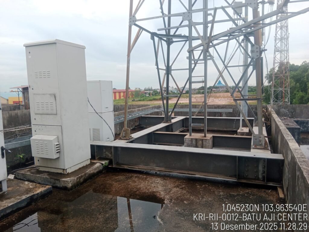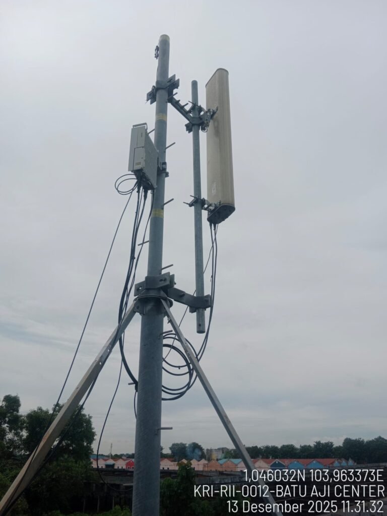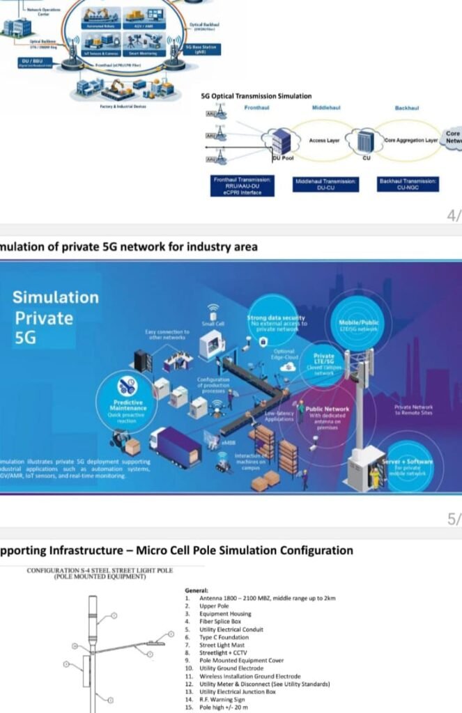 From the perspective of physical infrastructure, the project is supported by the construction of towers and micro cell poles that are integrated into the industrial area environment. The micro cell poles are designed to be multifunctional structures serving as mounting media for 5G antennas, radio equipment, fiber optic networks, electrical systems, and supporting devices such as CCTV and street lighting. This design allows for efficient land utilization while maintaining the aesthetics of a modern, well-organized industrial area that meets high technical standards.